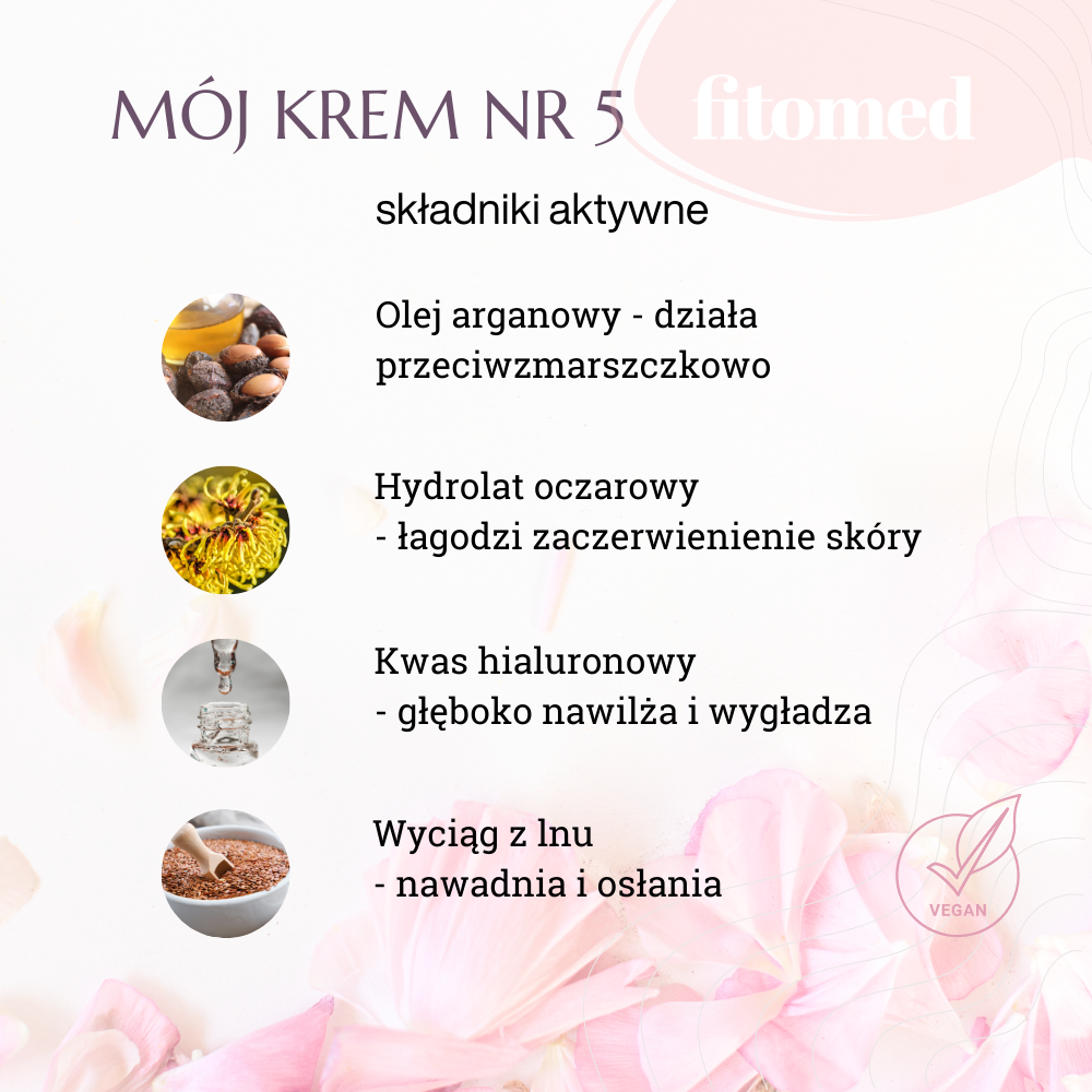 Składniki aktywne Mój krem nr 5 arganowy przeciwzmarszczkowy do cery suchej i dojrzałej (55 g) pod lupą