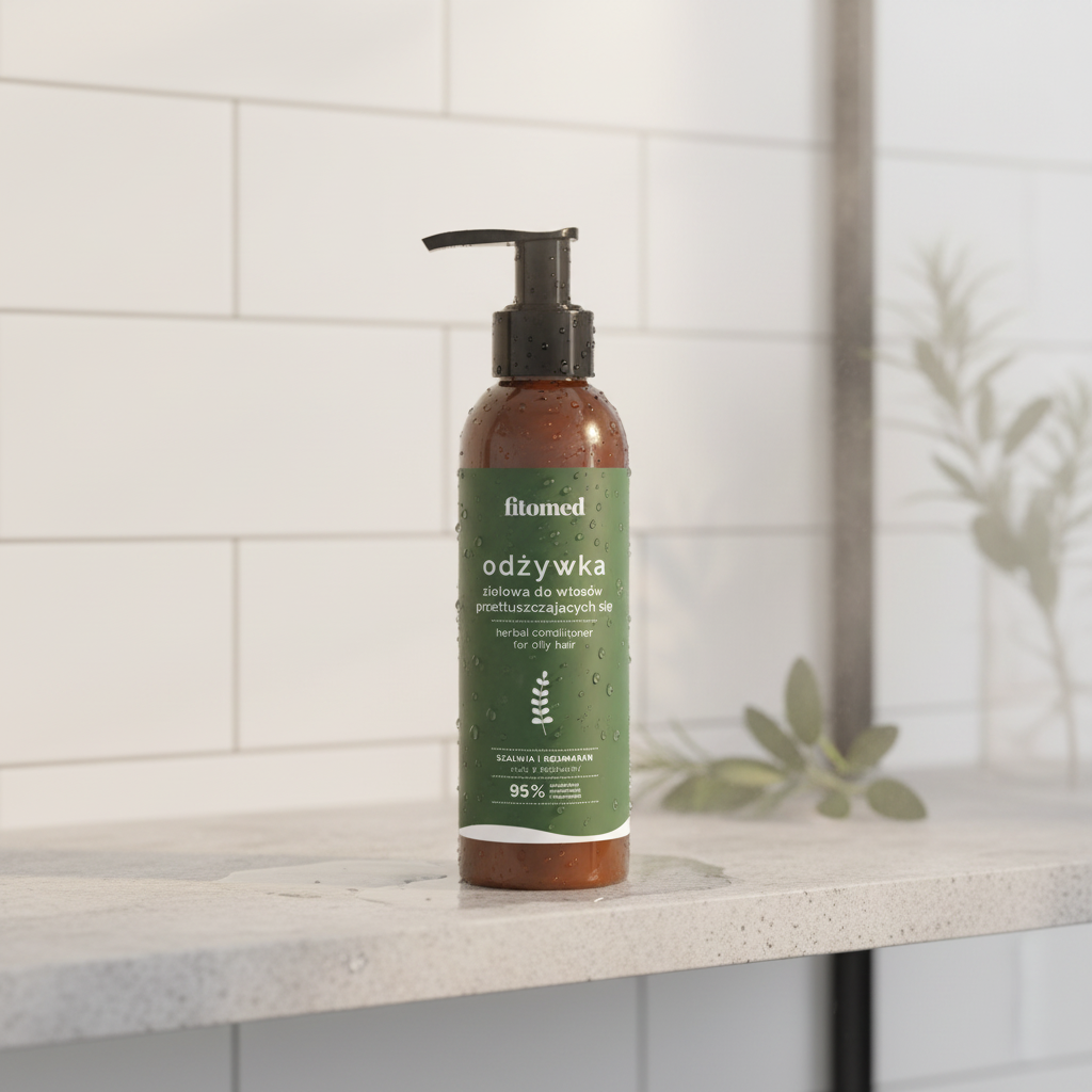 Sposób użycia: niewielką ilość odżywki nanieś na mokre, lecz osuszone ręcznikiem końcówki włosów, po kilku minutach spłucz ciepłą wodą. Dla uzyskania lepszego efektu pielęgnacyjnego polecamy stosowanie szamponu do włosów przetłuszczających się Fitomed.